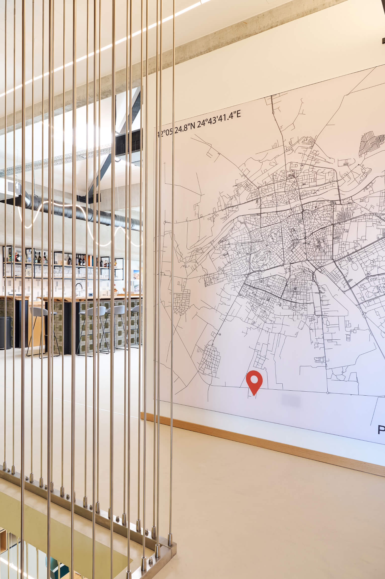 • Идентичност: Стилизираната карта на Пловдив в интериора подчертава локалната привързаност и обектите на фирмата в града.