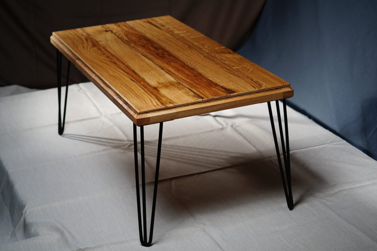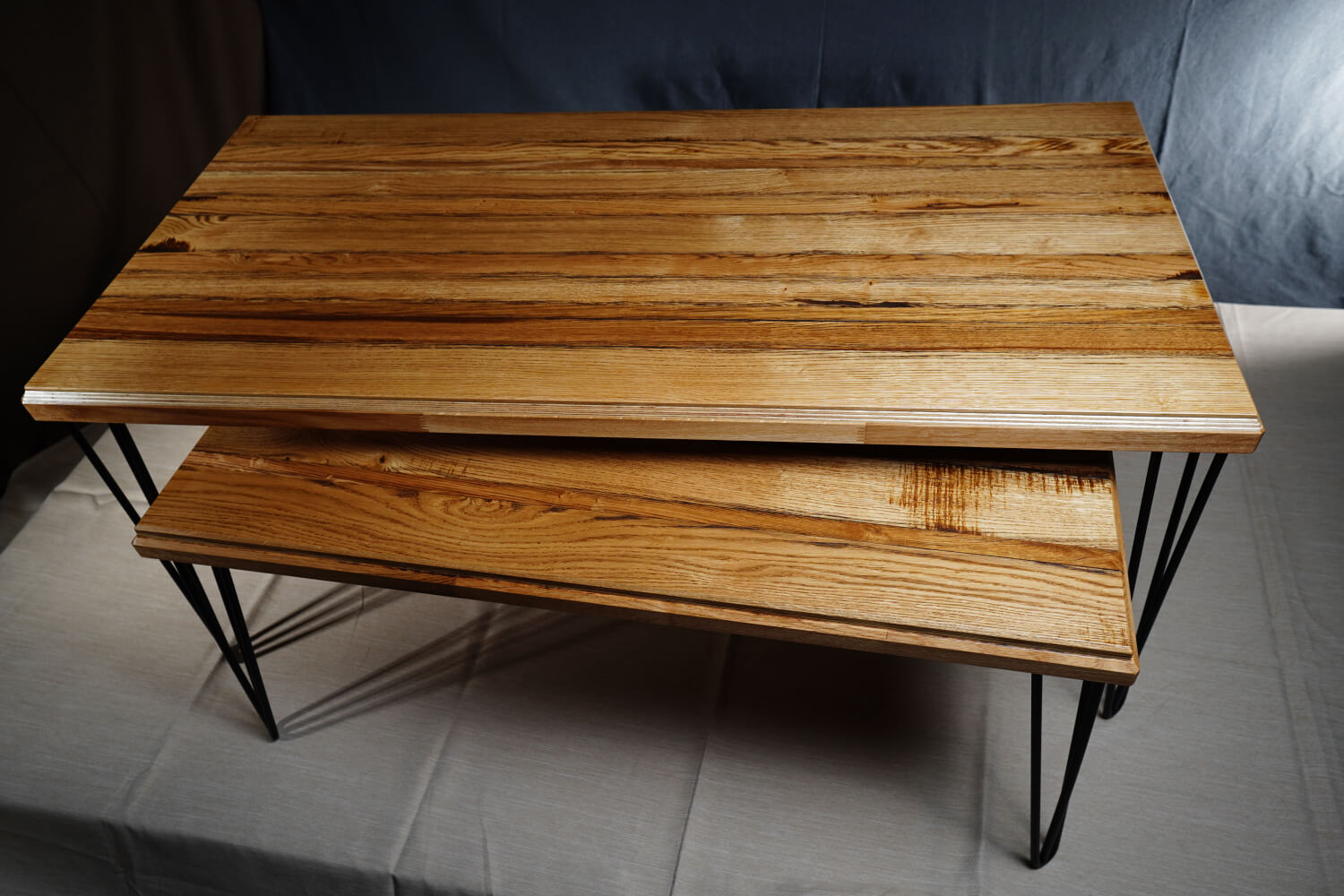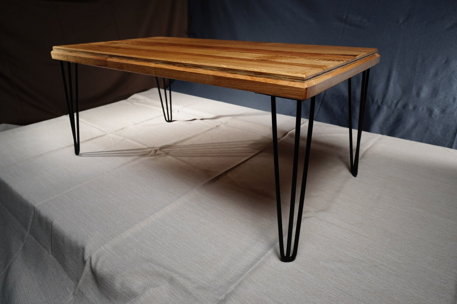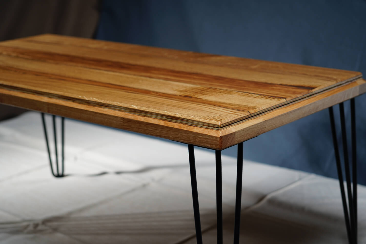 Игра на цветове и посоки Магията на тази маса е в детайла. Използван е контраста не само между цветовете , но и в посоката на дървесните влакна. Когато светлината падне върху плота, различните парчета я отразяват по различен начин, създавайки „жива“ повърхност, която се променя според ъгъла на гледане.