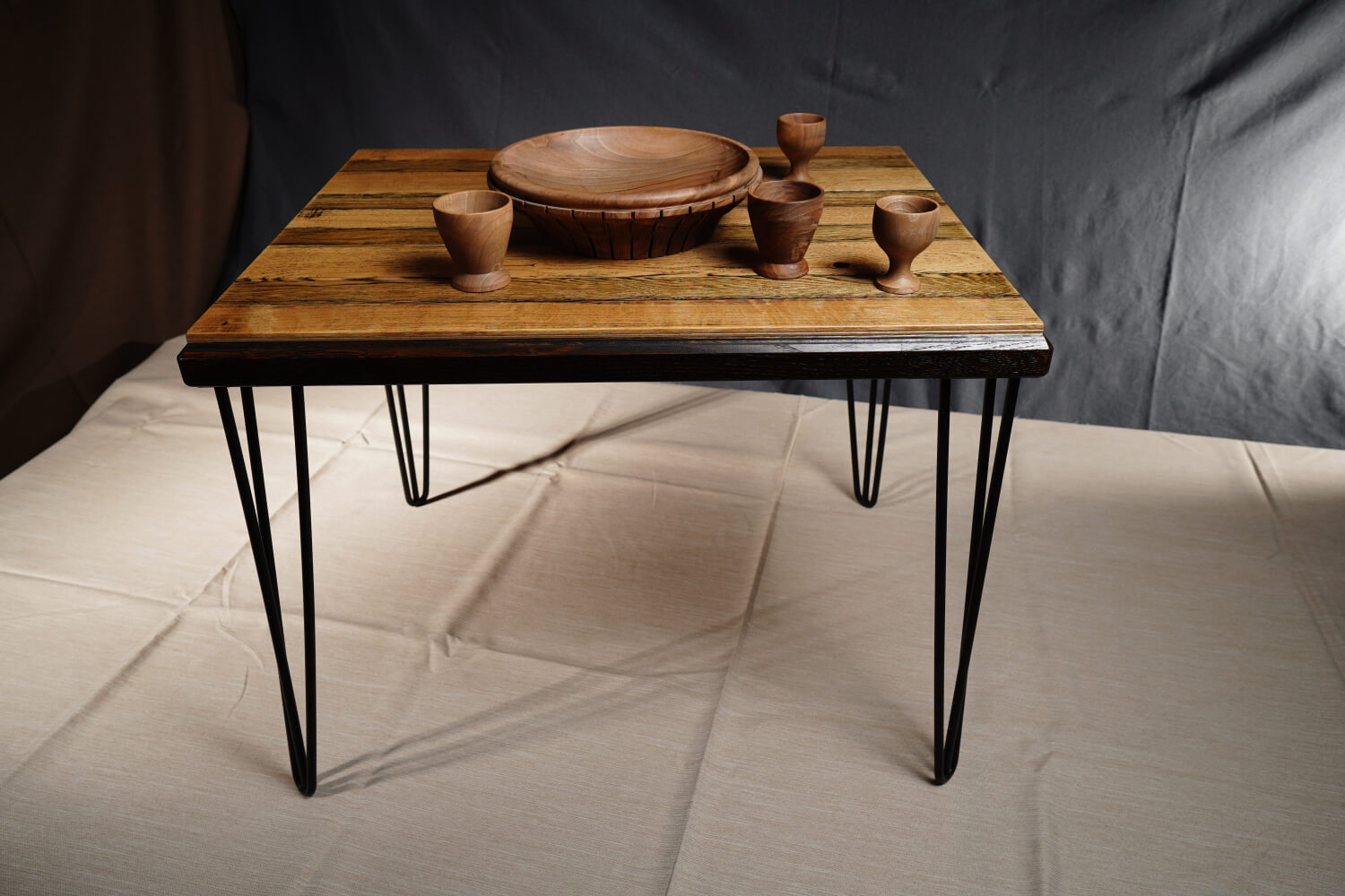 Крака: Прахово боядисани метални крака тип „фиба“ (Hairpin).
